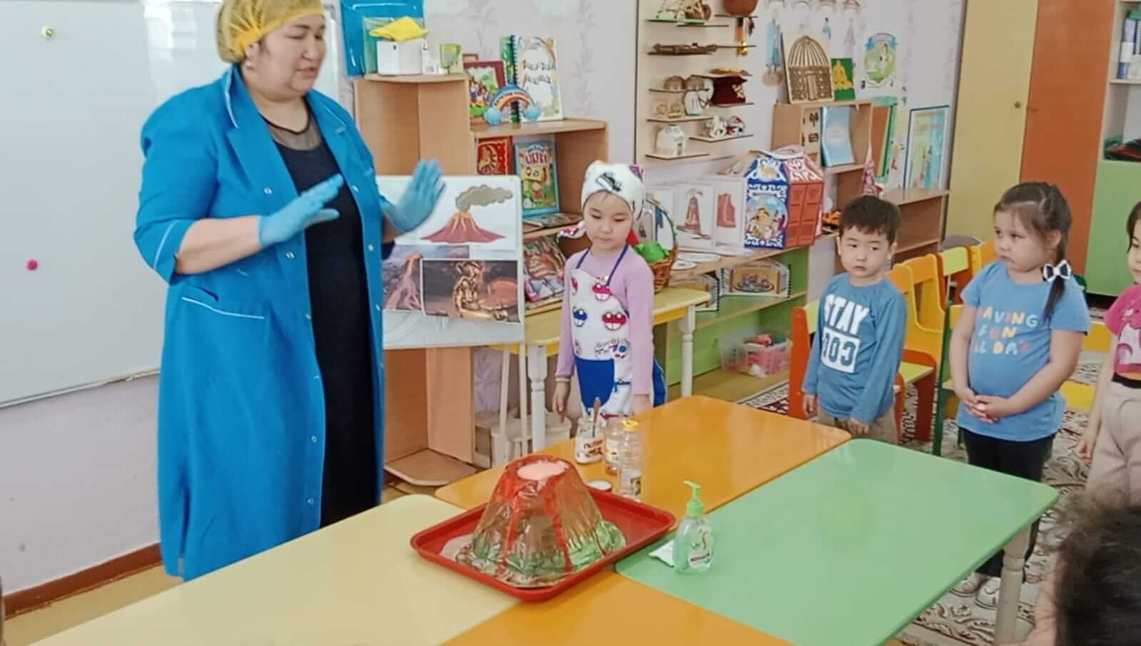 "Ғылымға жол" жобасы аясында "Біртұтас тәрбие" бағыты бойынша "Ертегілер" мектепалды даярлық тобының балаларымен "Жанартау" мен "Сиқырлы көбіктер" тақырыбында зерртеу жұмыстары өткізілді. Балаларды осындай табиғи құбылыспен таныстыру балалармен бірге "жанартау атқылауы" зерттеу жұмыстарын өткізу; балалардың қызығушылығын, тәжірибені орындау процесінде танымдық белсенділігін, қарым-қатынас дағдыларын дамытып; эксперименттік-зерттеу қызметіне қызығушылық тудырды. Балалардың сөздік қоры жаңа сөздер - лава, саңылау, жанартау, күл, ұйықтап жатқан жанартау, белсенді жанартау сөздерімен толықтырылды.