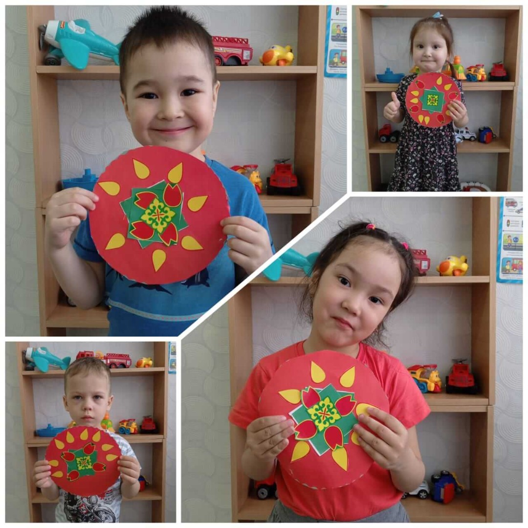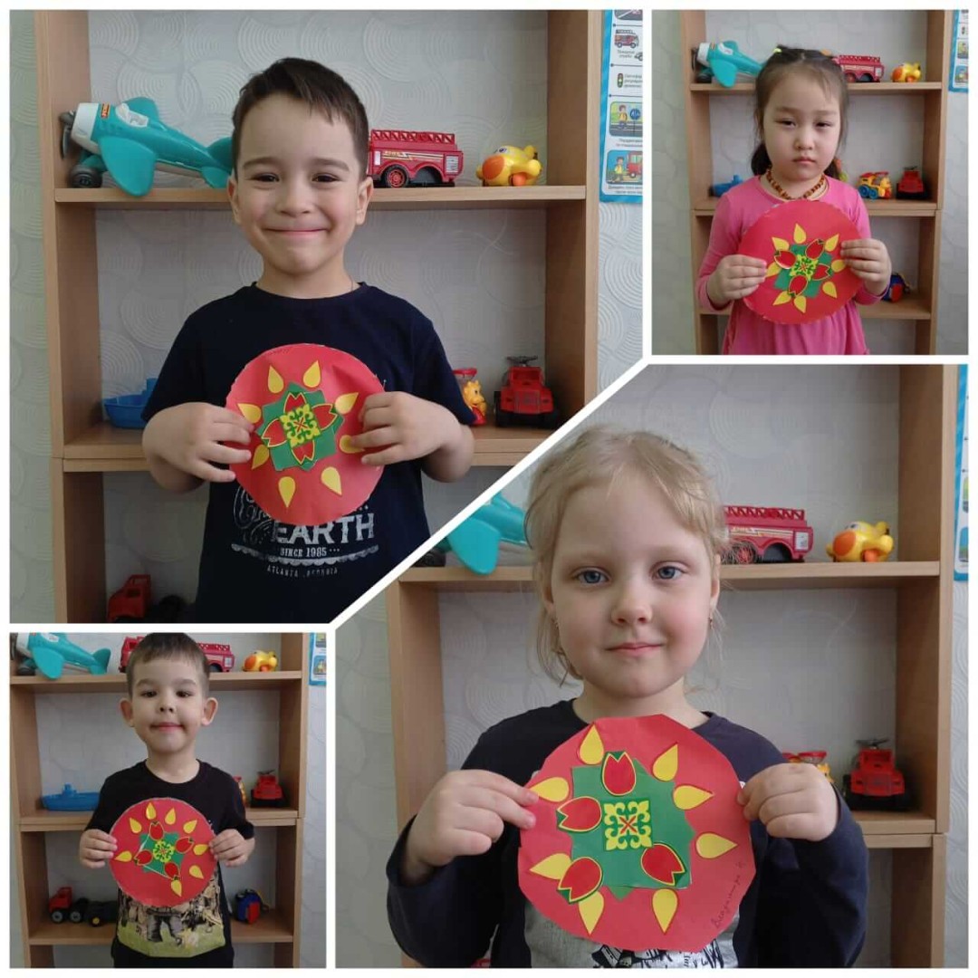 Біртұтас тәрбие» кейіс оқу-тәрбие үдерісі бойынша Жол картасының 11.9 тармағы негізінде мектеп жасына дейінгі балалардың өміріне деген қызығушылықтарын дамыту мақсатында жеке тұлғаны отансүйгіштік, елжандылық, елге деген құрмет сезіміне тәрбиелеу жұмыстары жүргізілді. Қазақстан халқының ұлттық-мәдени мұрасы, «Наурыз» мерекесі. «Қазақтың ұлттық ыдыс-аяқтары» тақырыбында ұйымдастырылған іс-шара өткізілді, нәтижесінде балалар қазақтың ұлттық ыдысы - табақты түрлі түсті қағаздан жапсырып жасады.
