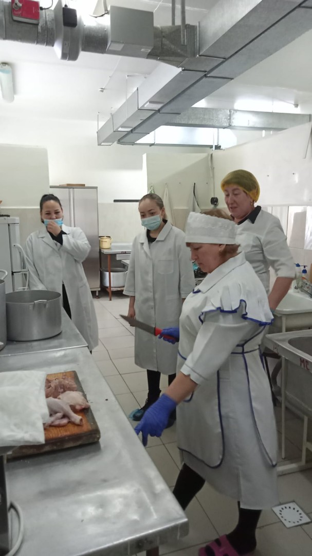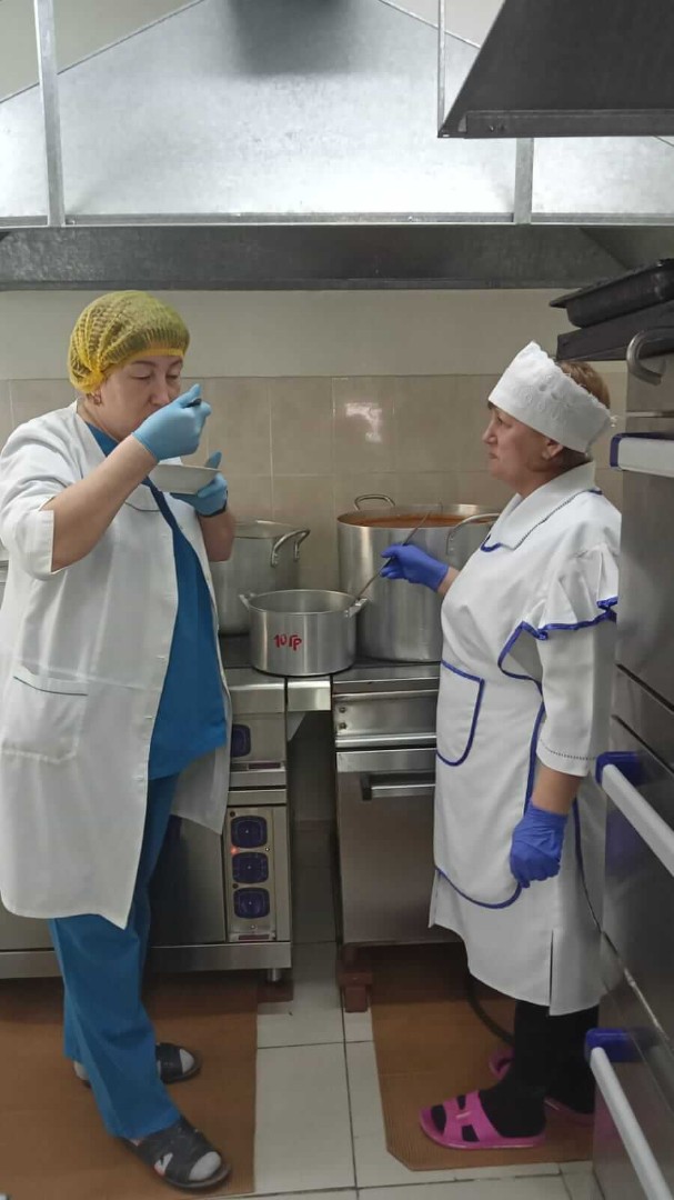 Ас блогының тамақтануын және санитарлық-гигиеналық жай-күйін бақылауды диеталық бике Дурбаева Гулинара Егинбаевна лауазымдық міндеттері бойынша жүзеге асырады.