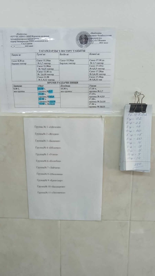 ШҚО білім басқармасының Курчатов қаласы бойынша білім бөлімінің «Журавушка» балабақшасы МКҚК тамақтандыру туралы ақпарат