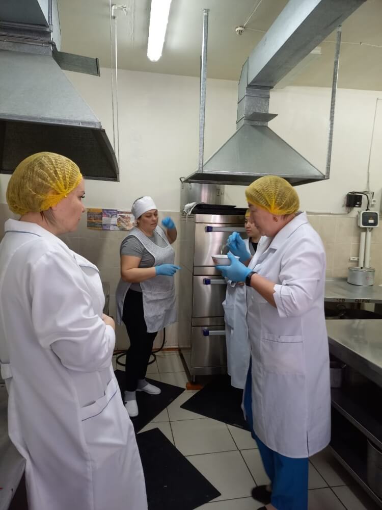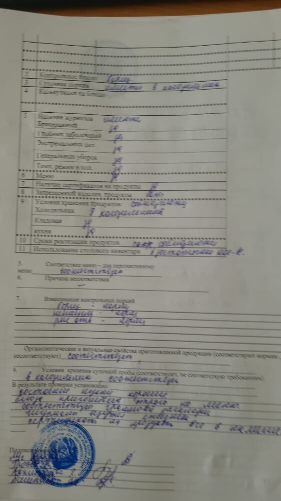 18.04.2023г. в ходе планового контроля и проверки бракеражной комиссии были просмотрены сертификаты качества закупаемых продуктов. Просмотрено меню на соответствие с 10-ти дневным меню сада. Присутствовали на раскладки обеда (бракераж, коллараж, норма и витаминизация третьего блюда Витамина С). Проверено было место хранения продуктов, холодильники.
