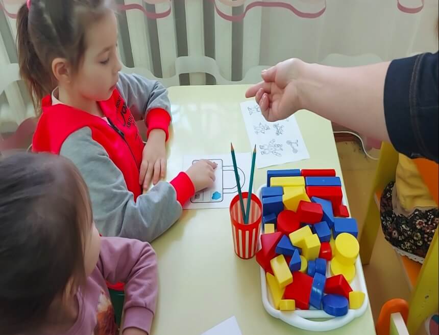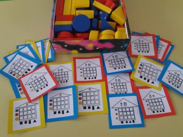 - Игры с блоками доступно, на наглядной основе знакомят детей с формой, цветом, размером и толщиной объектов.